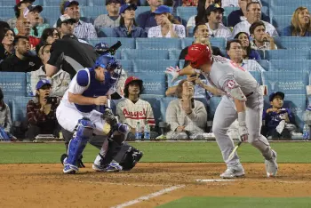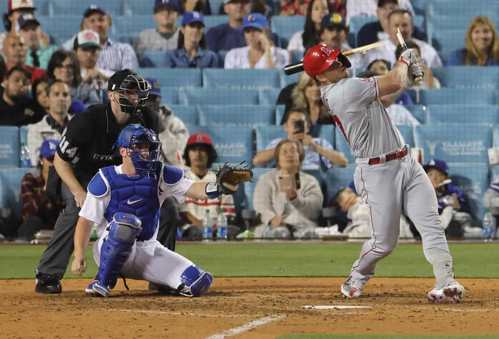 <ドジャース・エンゼルス>9回1死、トラウトの折れたバットが球審を直撃。球審は顔を抑えて交代(撮影・篠原岳夫) Photo by スポニチ エンゼルス 大谷翔平の打席直前 球審にアクシデント、トラウトの折れた… ギャラリーで見る この記事のフォト 2022年06月15日の画像一覧 もっと見る 2022年06月15日の画像をもっと見る