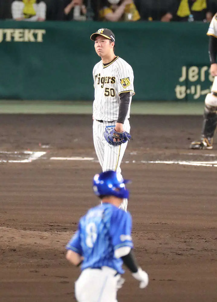 連続四死球などで2死一、二塁とされ、7番・神里に右中間スタンドに1点差に迫られる3ランを被弾。リードは守り、8勝目の権利を手にしたままマウンドを降りたが、ベンチでは悔しそうな表情を浮かべていた。