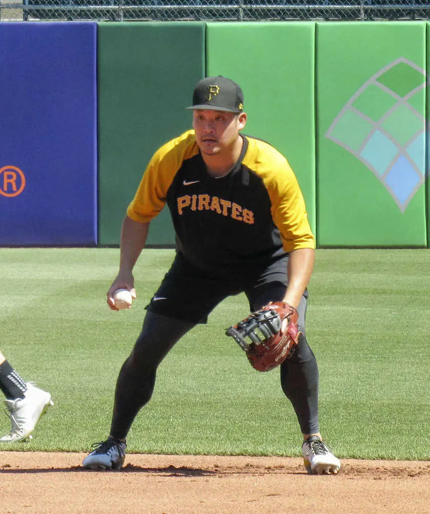 守備練習するパイレーツ・筒香=ピッツバーグ(共同)