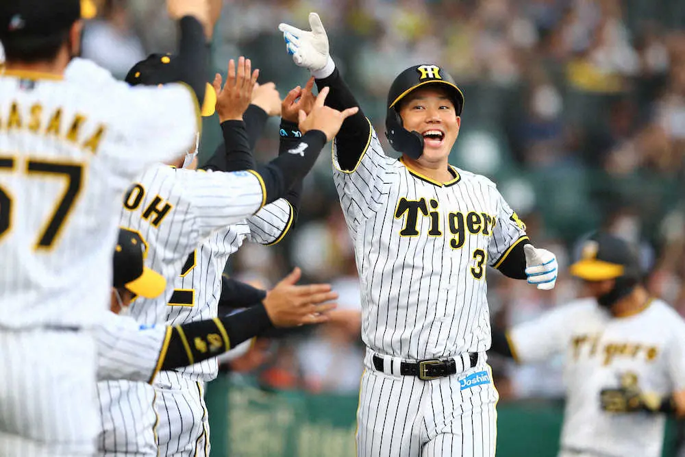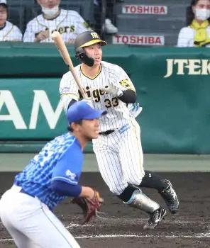 1点を追う初回。阪神・島田、中野の連打などで築いた2死満塁の好機で、トラフェスイベントのために選曲した奇数打席用の米米CLUB「君がいるだけで」が場内に響く中、左打席へ闊歩(かっぽ)。7日の日本ハム戦でノーヒッターの称号を得た先発・今永の150キロ内角直球を左翼線へ。「必死に食らいついた」と胸を張る一撃で2者を迎え入れ、逆転。ベンチに掲げた右手のガッツポーズは直後の山本の2点二塁打を呼び、その後の打線の奮起を誘発した。
