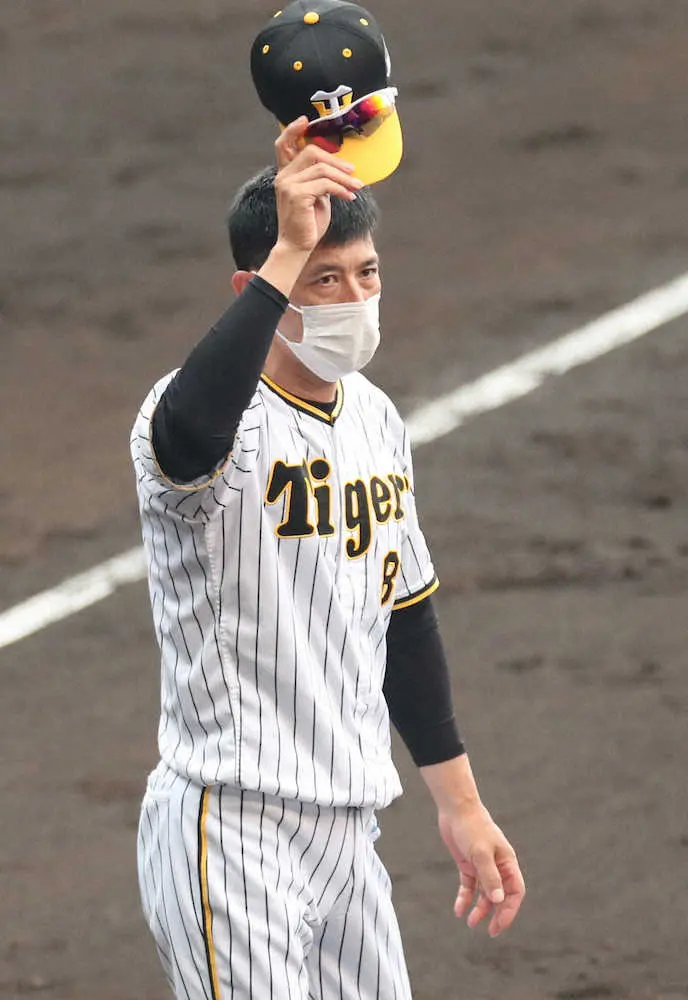 <神・D>試合終了後、帽子を取ってファンに感謝を示す阪神・矢野監督(撮影・坂田 高浩)