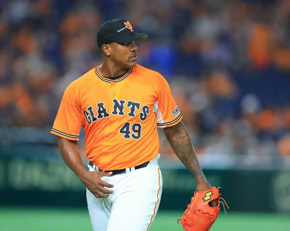 <巨・D>8回、降板するビエイラ(撮影・白鳥 佳樹)