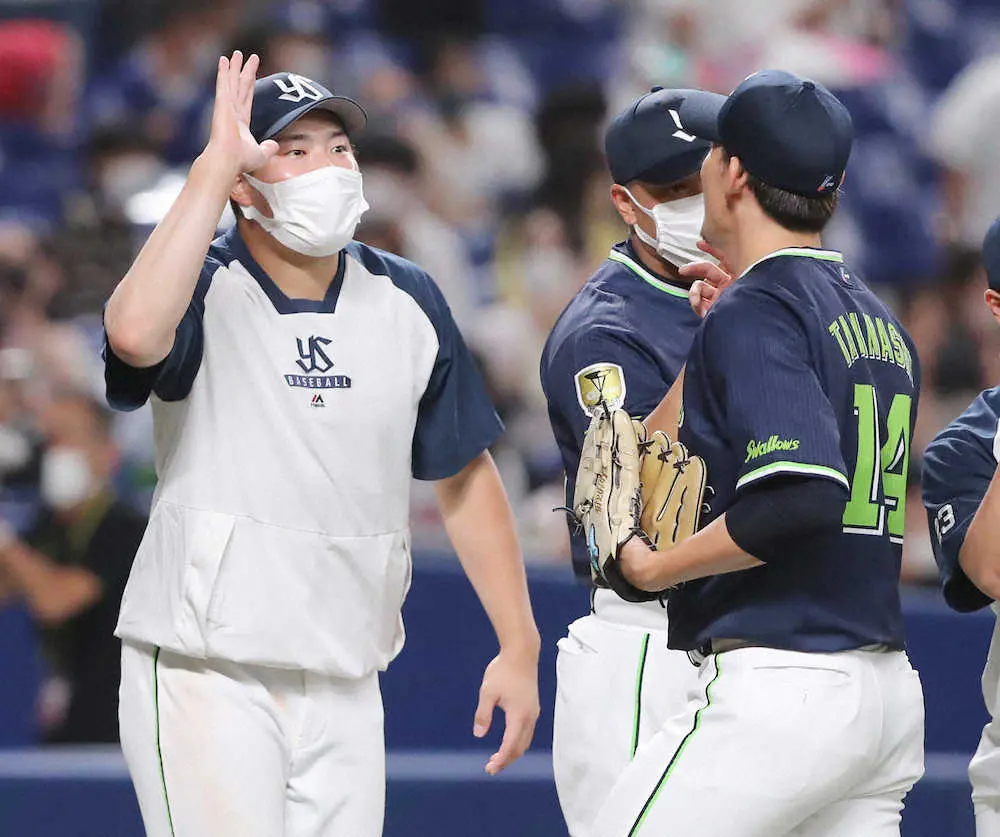 <中・ヤ>8回、2ランホームランを放った村上(左)を迎える高梨(撮影・椎名 航) Photo by スポニチ ヤクルト・高梨 移籍後初完投&初完封で5勝目 2本塁打の村上に感謝「本… ギャラリーで見る この記事のフォト 2022年06月23日の画像一覧 もっと見る 2022年06月23日の画像をもっと見る
