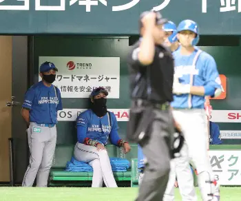 <ヤ・巨>5回、ソロを放ったウォーカーを同じポーズで迎える巨人ベンチ(撮影・村上 大輔)