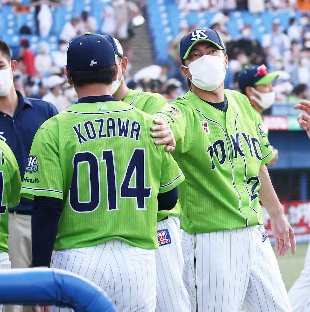 <ヤ・巨>8回、 3ランの村上を迎える高津監督 (撮影・白鳥 佳樹) Photo by スポニチ ヤクルト高津監督 両軍3戦計67点の総力戦「絶対今日は取る姿勢で」村上は… ギャラリーで見る この記事のフォト 2022年06月26日の画像一覧 もっと見る 2022年06月26日の画像をもっと見る