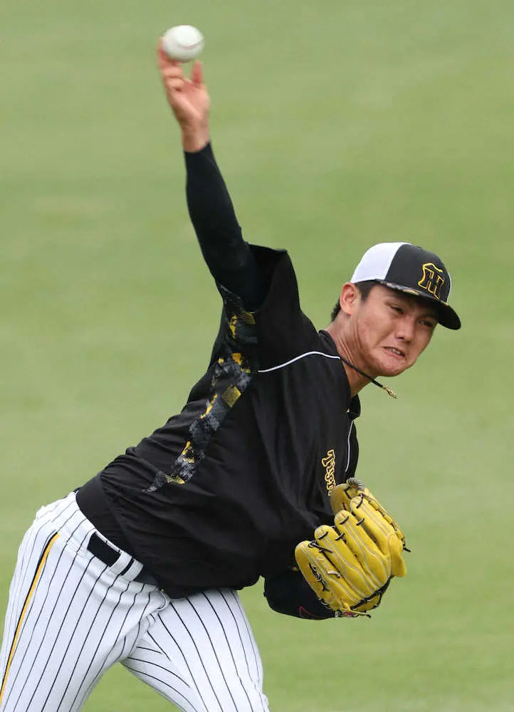キャッチボールをする阪神・西純(撮影・坂田 高浩)