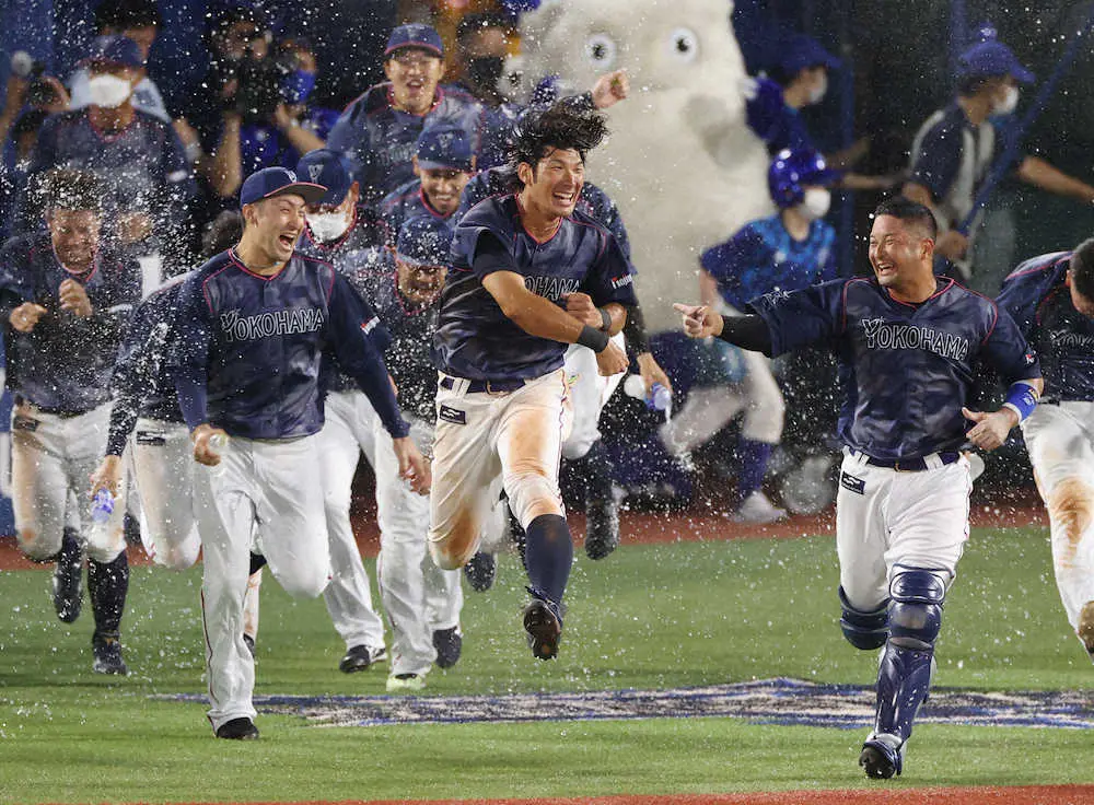 DeNAの今季2度目のサヨナラ勝ちは、歓喜のウオーターシャワーが2度行われた。