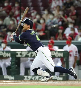 目の前で同い年の村上が申告敬遠された。この試合で2度目。分かってはいたが、丸山和は「なにくそ」の思いで2―2の延長12回2死一、二塁の打席に向かった。その2球目、中崎の135キロのチェンジアップを捉えた打球は中堅の頭を越える勝ち越しの2点二塁打。ルーキーのバットが4連勝に導くとともに、プロ野球史上最速の優勝マジック点灯に王手をかけた。