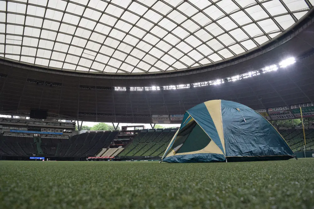 その野球場に6月のある日、不釣り合いなキャンプ用のテントが張られたという。同イベント中、実際に一晩を過ごすことができるテントだ。
