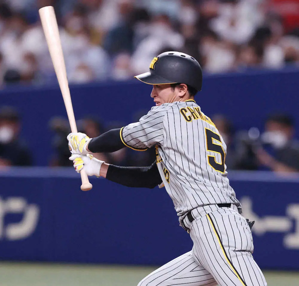 阪神・近本が、99年の大豊泰昭を抜いて球団歴代単独3位となる27試合連続安打を記録した。