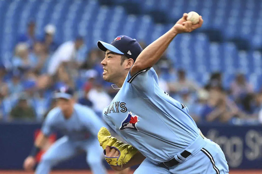 初回は最速95マイル(約153キロ)の直球を10球続けるなど「球速、勢いとも手応えがあった」。6月は制球難に苦しみここまで3敗。映像やノートを見直し、リリースポイントが下がる癖に気付いた。2日前のブルペンで修正。この日は1四球で「結果として表れた」と胸を張った。移動の機内で主砲ゲレロらが酒を持って励ましに来るなど仲間に支えられた。「彼らのためにも頑張ろうと思った。本当に勝てて良かった」と喜びをかみしめた。