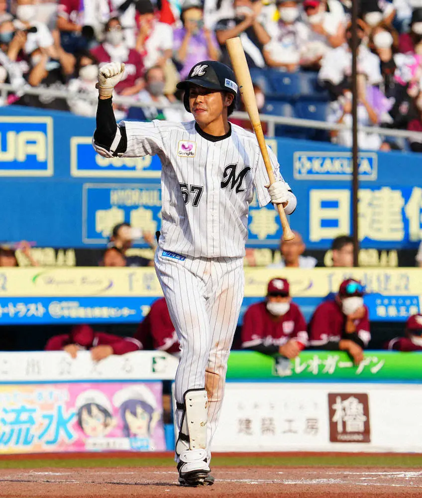 同点の8回2死満塁。井口監督は7回から代走出場の2年目をそのまま打席に送った。「代打も考えたが、投手が制球に苦しんでいたので」と言うように、相手左腕・鈴木翔は既に2四球。レアードもマーティンもベンチに残っていたが、ボール球を振った割合を示す「O―Swing%」がリーグで4番目に高い36・3%のレアードより、プロ通算3安打ながら同25・9%の小川の方が押し出し四球で勝ち越せると考えた。