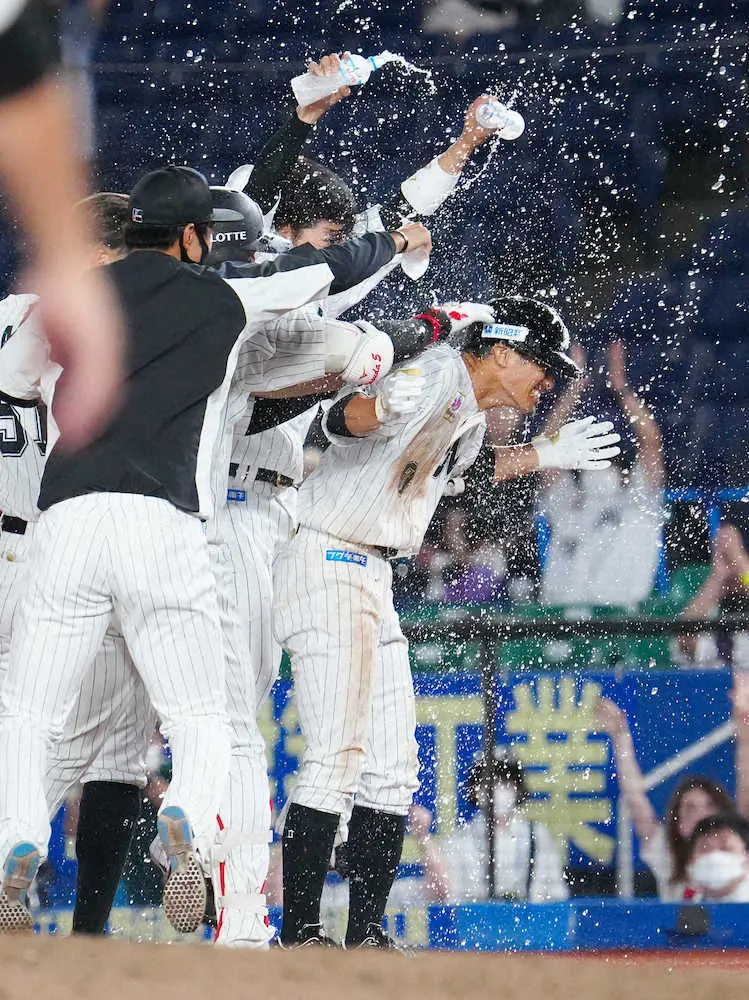 ロッテ荻野「何とか還したかった」延長10回執念のサヨナラ打!今季初シャワー「いいアイシングに」
