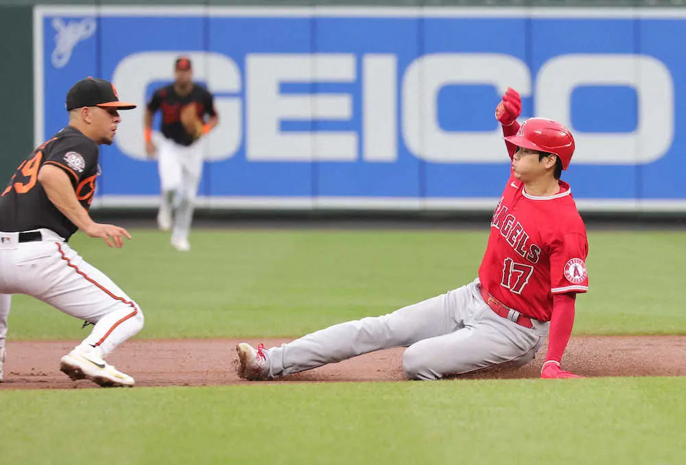 <オリオールズ・エンゼルス>初回2死一塁、一走の大谷は二盗を試みるがアウト(撮影・篠原岳夫) Photo by スポニチ 大谷翔平 第2打席で2試合ぶり安打!ベーブ・ルース生誕地でマーク ギャラリーで見る この記事のフォト 2022年07月09日の画像一覧 もっと見る 2022年07月09日の画像をもっと見る