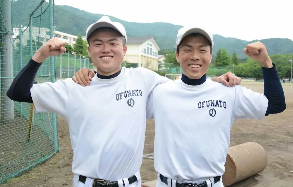 シード校として夏の岩手大会に挑む大船渡の(左から)山田主将、左腕・佐々木