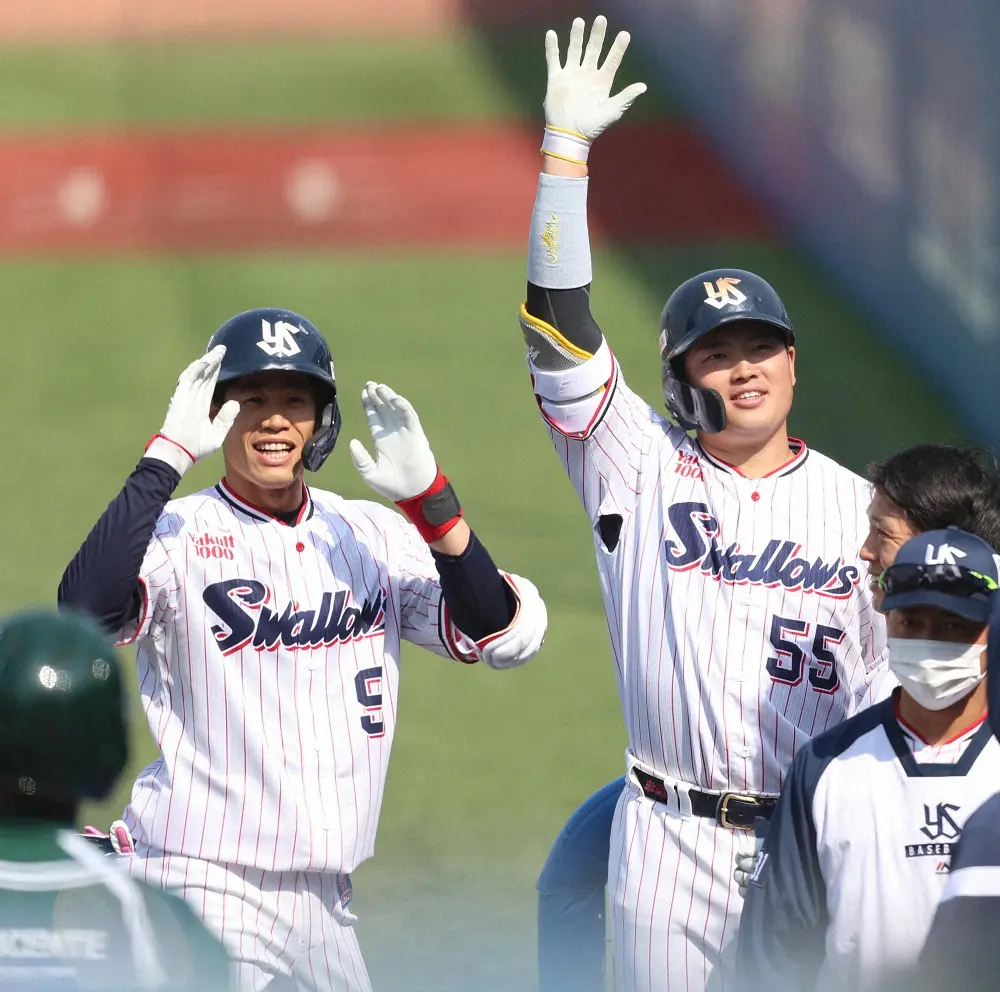 ヤクルト塩見(左)と村上