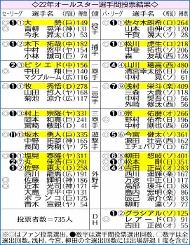 ≪ファン投票に続き選手間投票でも選出≫「マイナビオールスターゲーム2022」(26日、ペイペイドーム、27日、坊っちゃんスタジアム)の選手間投票の結果が発表され、ロッテの「完全試合バッテリー」がファン投票に続いて選出された。最速164キロを誇る20歳の佐々木朗と高卒1年目ながら落ち着いてリードする18歳捕手の松川は今やチームに不可欠な存在。2位のオリックス・山本の120票を大きく上回る264票を集めた佐々木朗は「選んでいただけたことは、とてもうれしく光栄」と感謝し、松川は「正直、夢にも思っていませんでした」と語った。