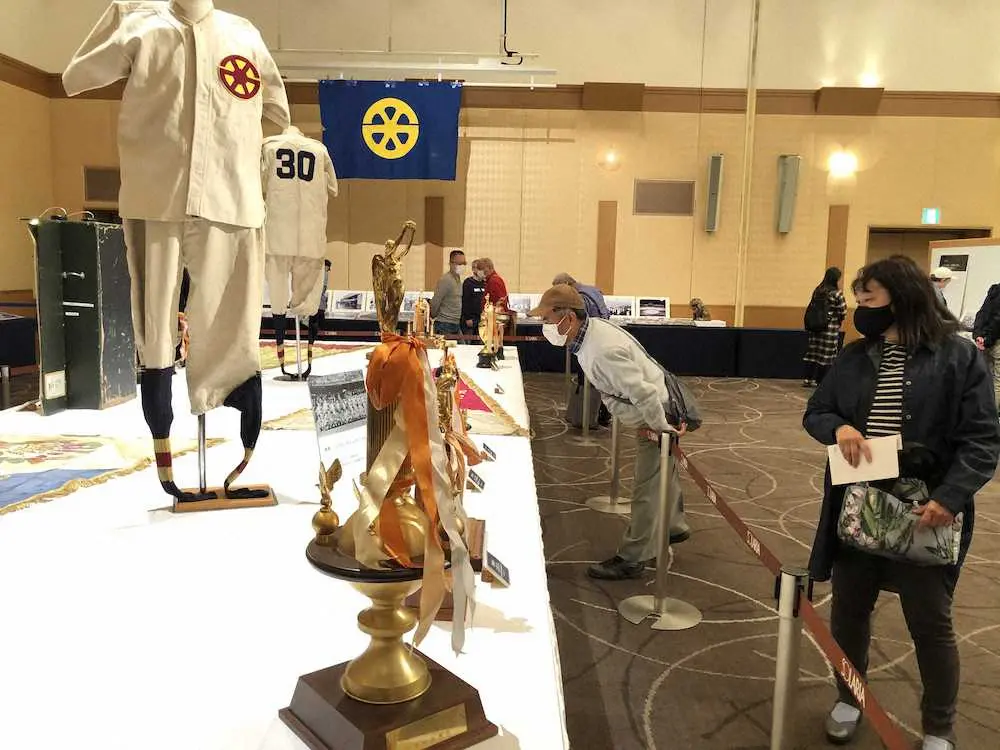 昨年の西鉄ライオンズの軌跡展ではユニホーム、トロフィーなどが展示され熱心なファンが訪れた