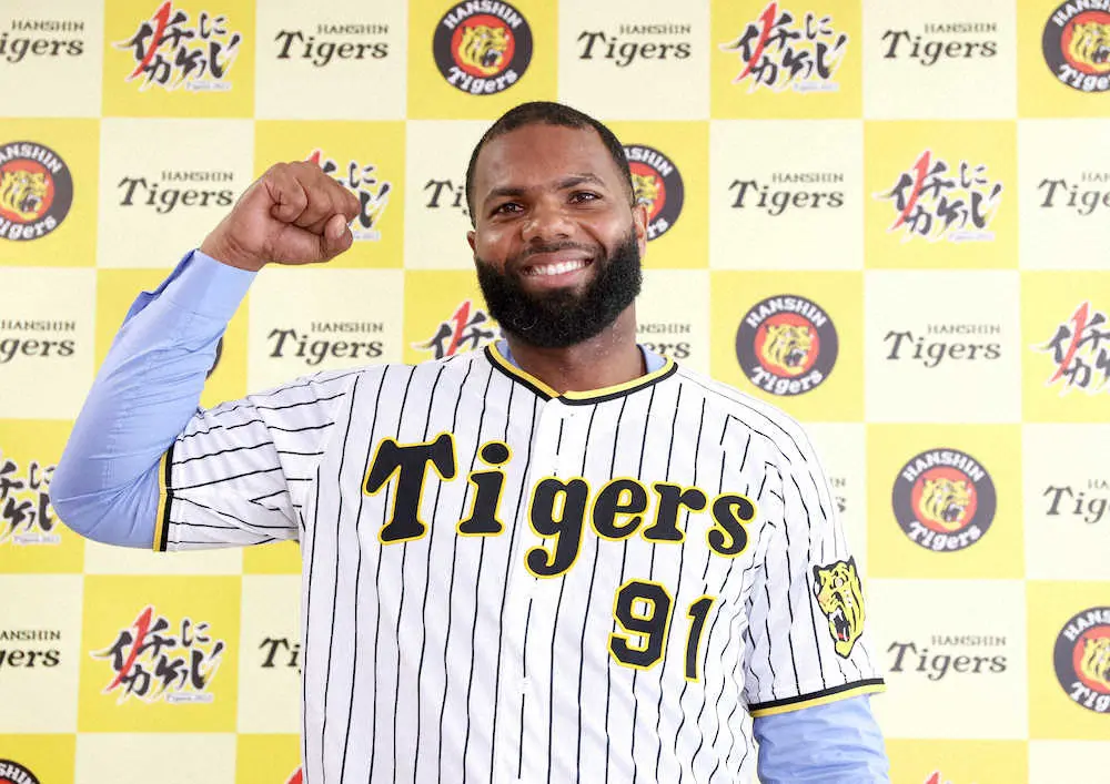 阪神の新外国人、アデルリン・ロドリゲス内野手(30)が12日、西宮市内で入団会見に臨んだ。