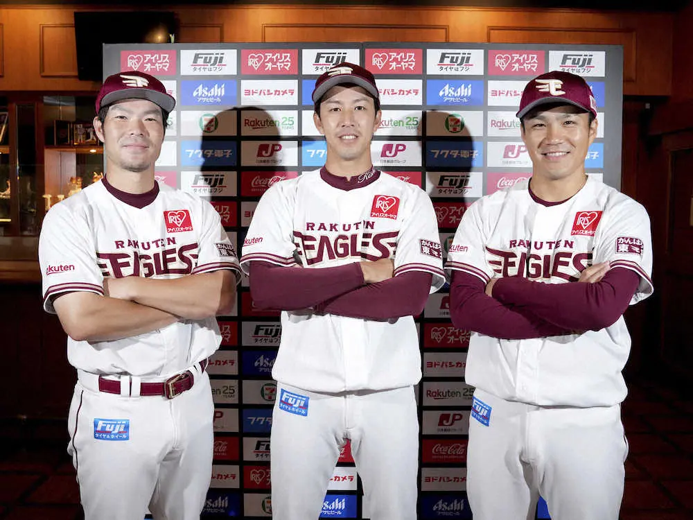 監督推薦で球宴出場を決めた楽天の(左から)島内、岸、則本(球団提供)
