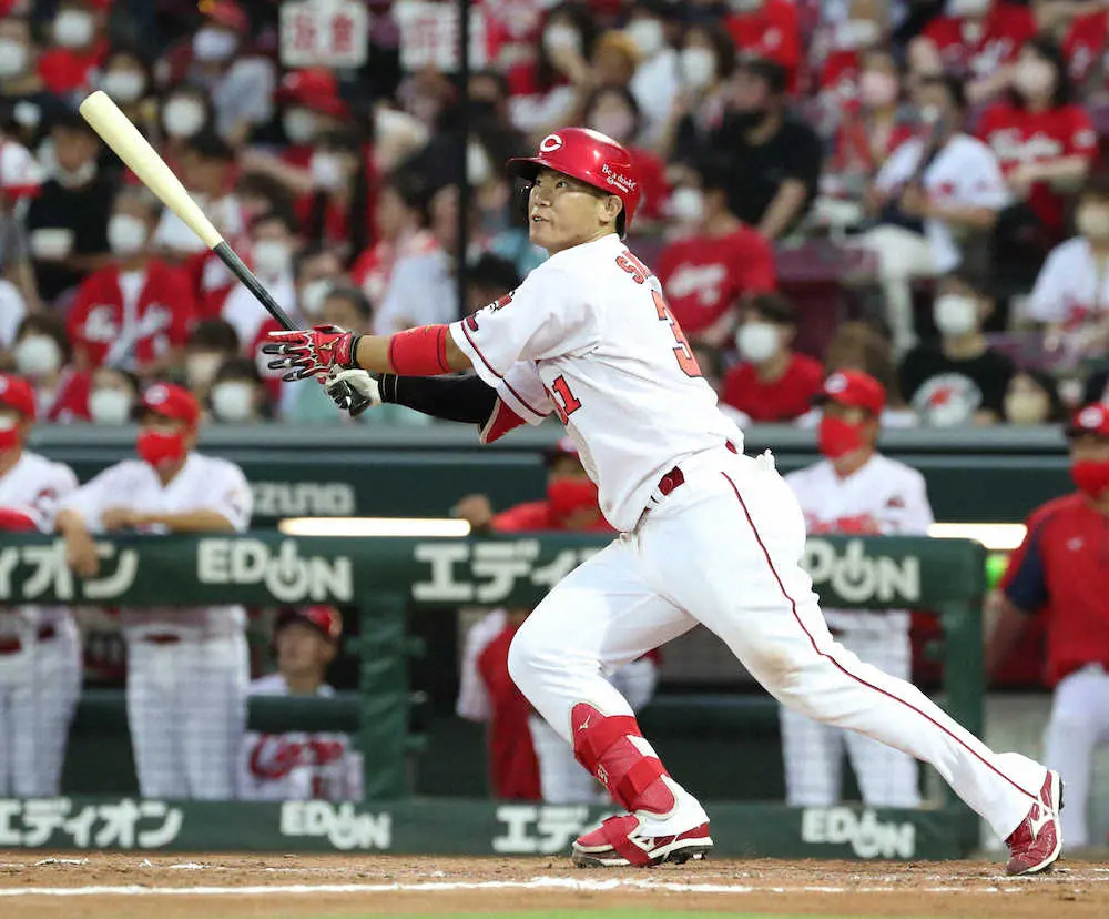 19打席ぶり安打の広島・秋山は「地元で打てたので変わってくるのかなと」 佐々岡監督がきっかけに期待