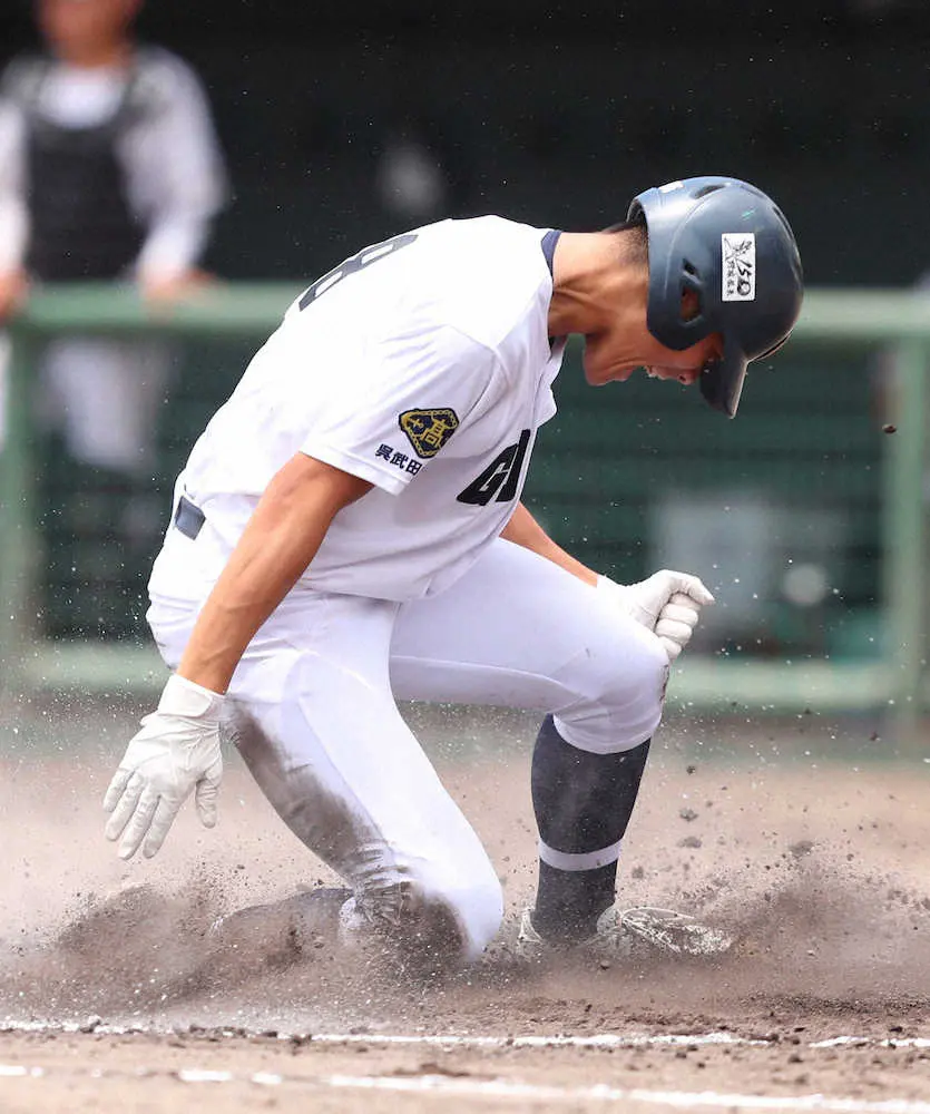 今秋ドラフト候補に挙がる呉港・田中多聞外野手(3年)が今夏初戦の安西との2回戦に「4番中堅」で先発。3四死球で2打数無安打も、魂のヘッドスライディングで初戦突破に導いた。