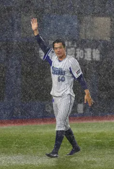 DeNAは15日、本拠地でのヤクルト13回戦が雨天順延となった。試合開始前の午後6時35分に順延が決定すると、知野直人選手が雨中のグラウンドに登場。ダイヤモンドを1周して本塁にヘッドスライディングするパフォーマンスを披露して、ファンを喜ばせた。