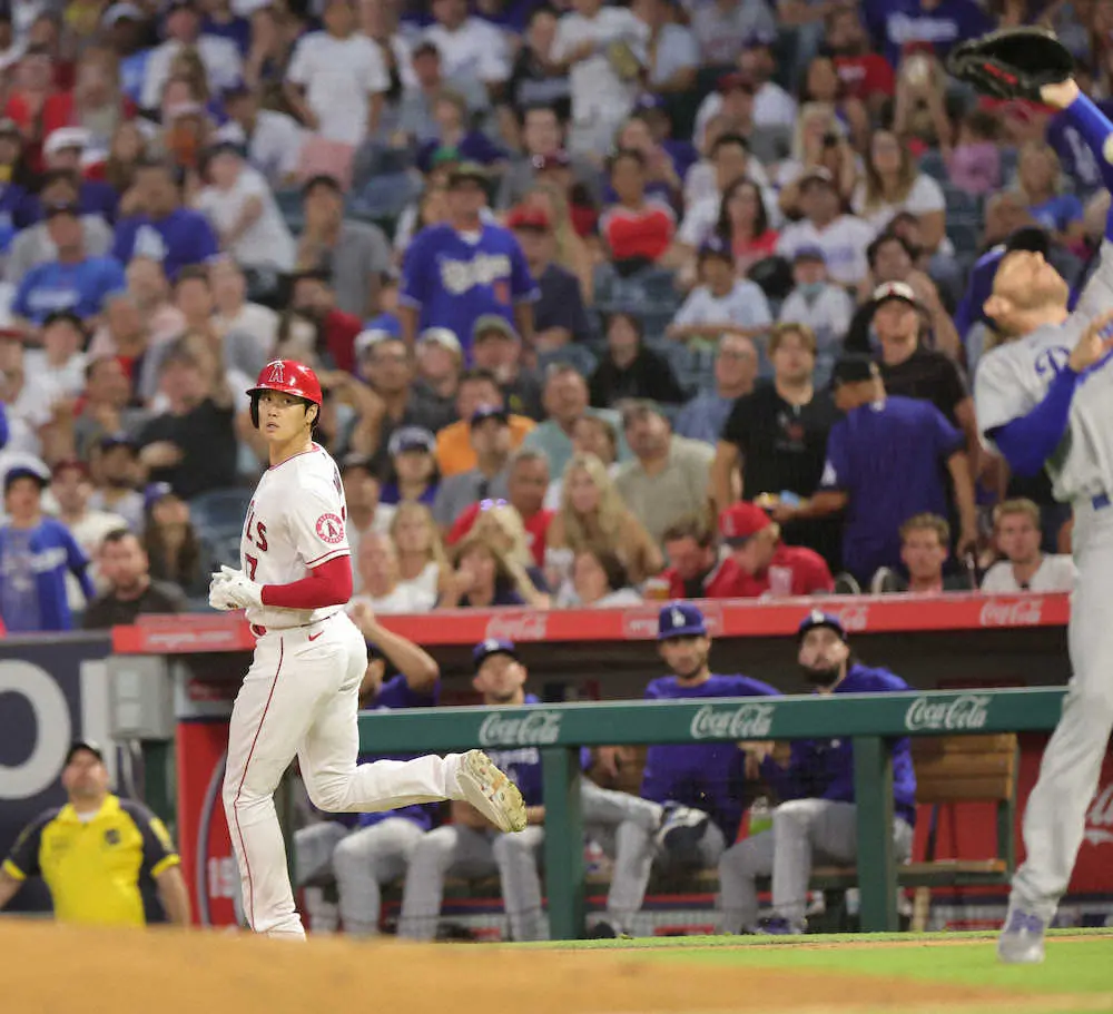 <エンゼルス・ドジャース>3回、内野フライを打ち、ボールを見上げる大谷(撮影・篠原岳夫) Photo by スポニチ 大谷 内野フライが“55・2メートル”上がりすぎた? 相手一塁手の落球エラ… ギャラリーで見る この記事のフォト 2022年07月17日の画像一覧 もっと見る 2022年07月17日の画像をもっと見る