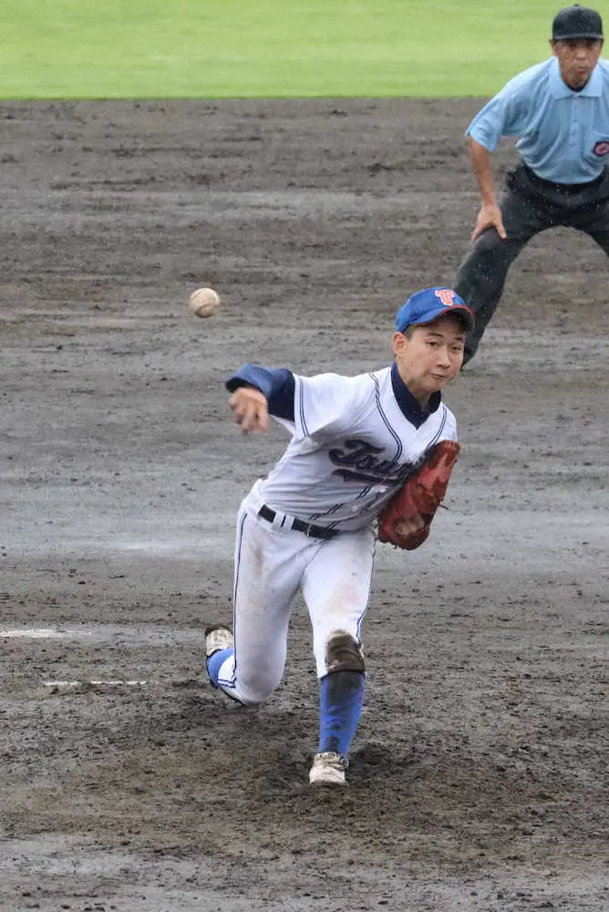 「球が上に抜けないように低めを意識した」。試合開始前から雨が降り続け、マウンドがぬかるむ悪条件。それでも切れのある直球を低めに集め、神奈川工を4安打2四死球で1点も許さず、8回コールドで決めた。