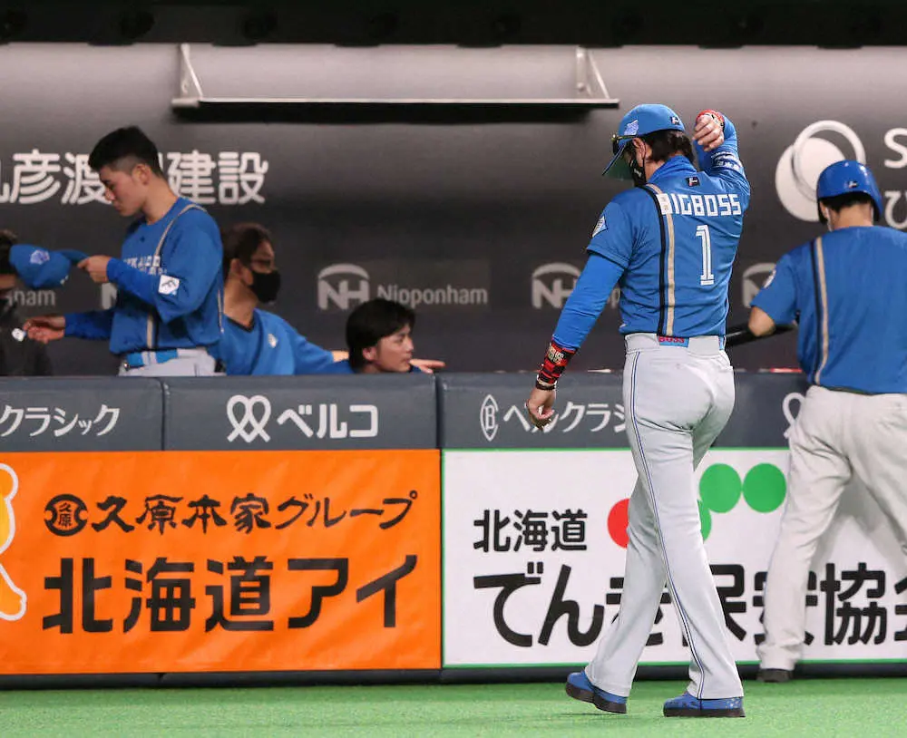 <日・西>7回を終え投手交代を告げベンチに下がる新庄監督(撮影・高橋茂夫)