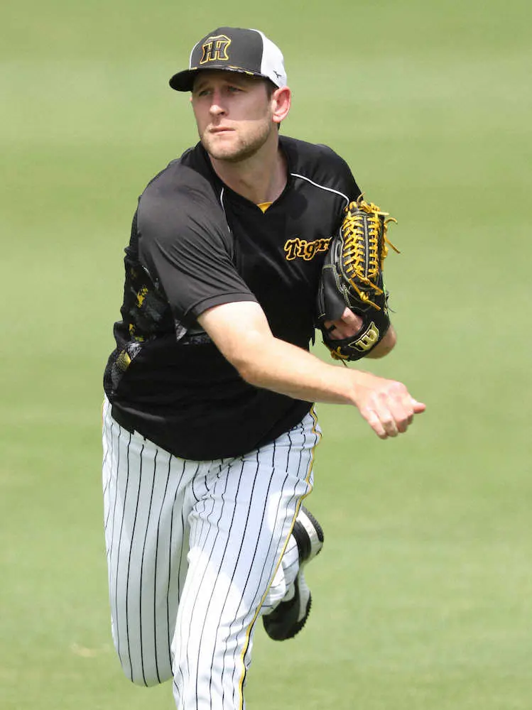 <神・中>キャッチボールをするガンケル(撮影・坂田 高浩)