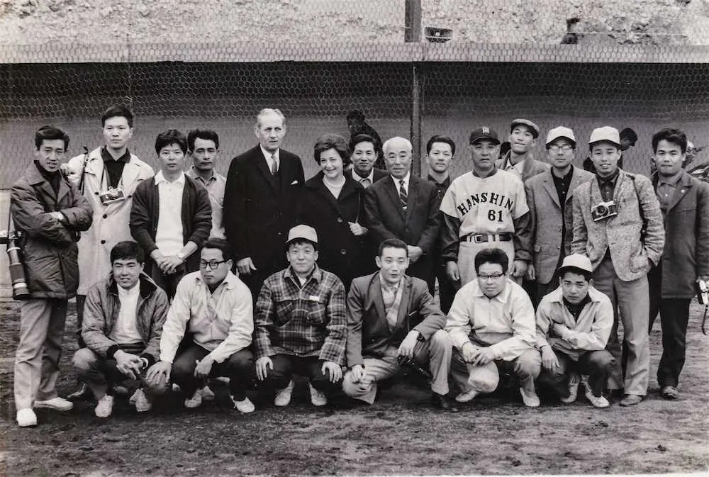 初キャンプの65年、監督・藤本定義が残したメモには<新聞記者を大切にあつかえ>とあった。室戸岬への半日旅行や料亭での食事会を開いている。孫の藤本義人に借りた写真に当時の担当記者との記念撮影がある。