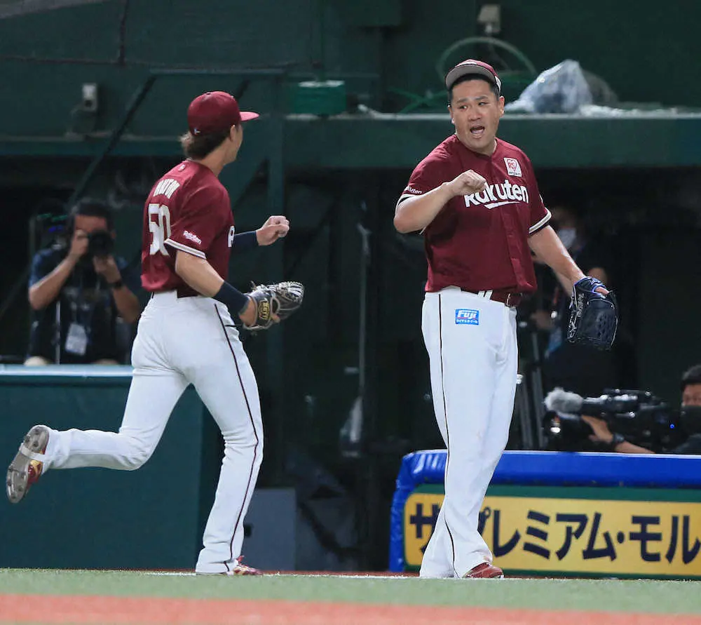 <西・楽>4回、岡島の適時打で生還した茂木(右)を出迎える田中将(撮影・尾崎 有希) Photo by スポニチ 楽天 西武と4時間超え“熱戦”も延長12回決着つかず…今季2度目の引き分け ギャラリーで見る この記事のフォト 2022年07月23日の画像一覧 もっと見る 2022年07月23日の画像をもっと見る