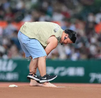 <西・楽>底をくり抜いたシューズでセレモニアルピッチを行うスギちゃん(撮影・尾崎 有希) Photo by スポニチ 西武「WILDユニ」でスギちゃん始球式 「靴底はくりぬいてやったぜ」のほ… ギャラリーで見る この記事のフォト 2022年07月24日の画像一覧 もっと見る 2022年07月24日の画像をもっと見る