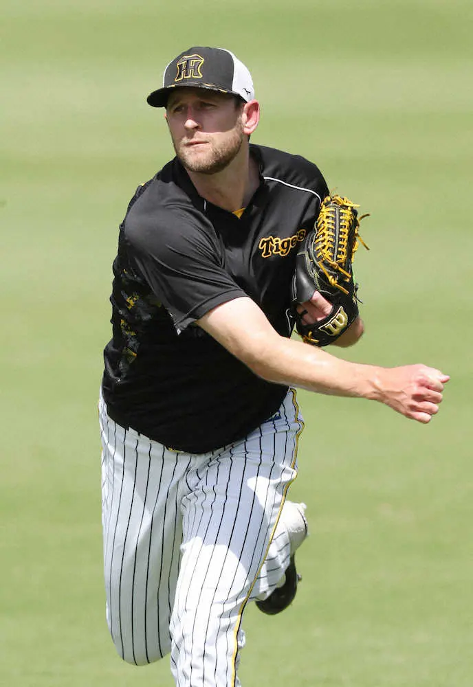 <神・D>キャッチボールをするガンケル(撮影・坂田 高浩)