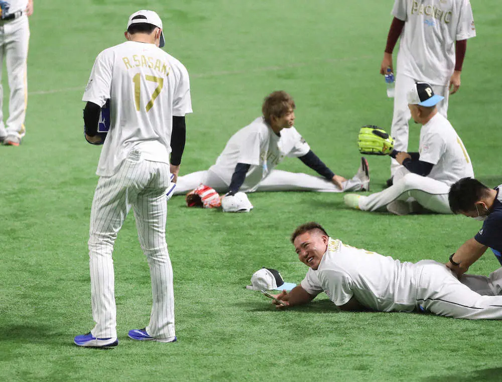 オールスター第1戦<全パ・全セ>きつねの耳を付ける松川(右)(撮影・岡田 丈靖) Photo by スポニチ 【球宴】朗希 山川と“あいみょん談議”由伸とも談笑「いろんな話ができた… ギャラリーで見る この記事のフォト 2022年07月26日の画像一覧 もっと見る 2022年07月26日の画像をもっと見る