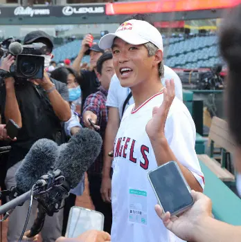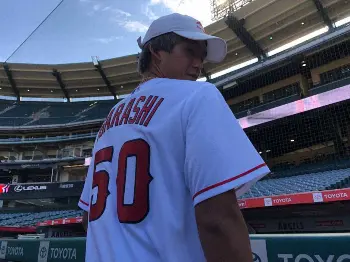 五十嵐の「五十」にちなみ、背番号「50 IGARASHI」のエンゼルスの白いホームユニホームを着用。「野球は子どもの時に学校で少し遊びでやった程度。こんなに大きいエンゼルスタジアムで大勢の前で投げるなんて。話しているだけで緊張しています」と笑顔で語った。