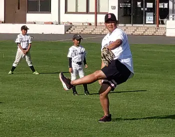 松坂大輔氏「少し負けず嫌いが出た」レッドソックスユニ姿で少年と本気対決