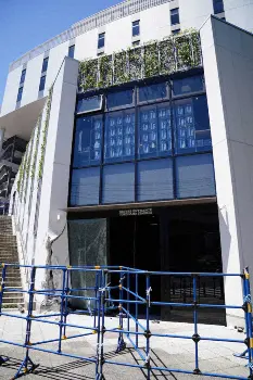 ハマスタ横の市道で衝突事故 車が球場正面入り口に突っ込み外壁大破