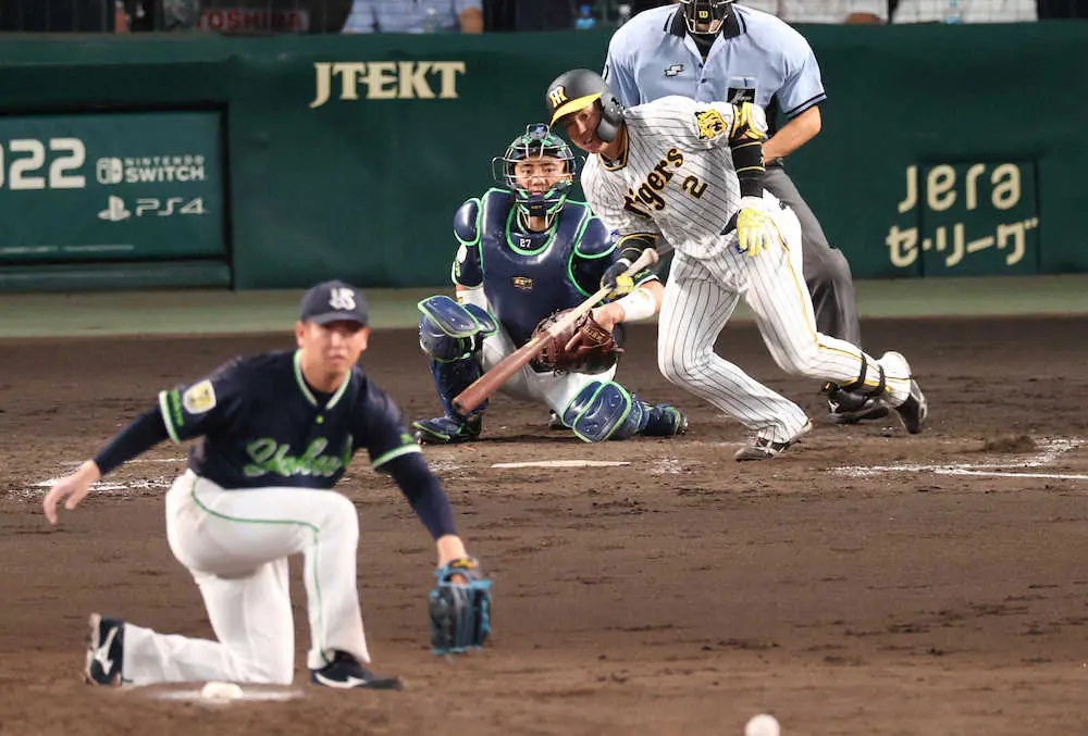 <神・ヤ>4回2死一、二塁、糸原は先制の中前適時打を放つ(撮影・坂田 高浩) Photo by スポニチ 阪神打線お祭り4回一気5安打5得点 糸原&梅野、打点そろい踏みなら負け知… ギャラリーで見る この記事のフォト 2022年07月31日の画像一覧 もっと見る 2022年07月31日の画像をもっと見る