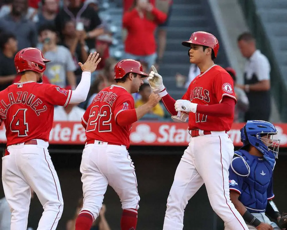 エンゼルス大谷翔平投手(28)が30日(日本時間31日)、本拠地アナハイムで行われたレンジャーズ戦に「1番・DH」で先発出場。第2打席で4試合ぶり22号本塁打を放った。