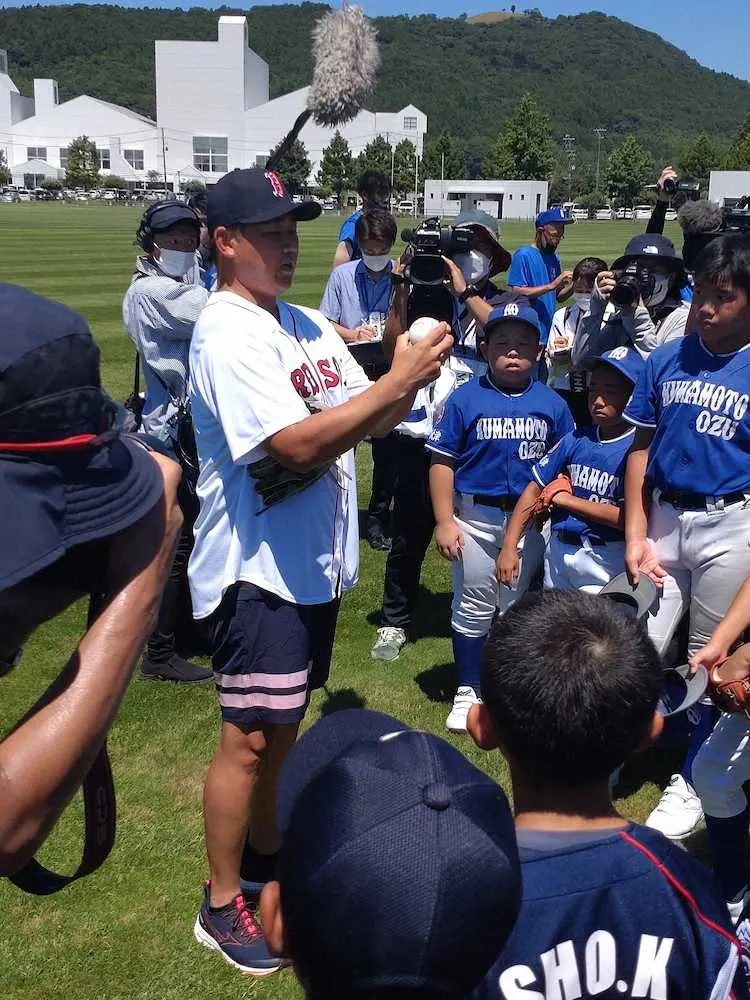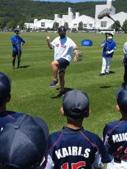 松坂大輔氏が少年少女に初指導 レッドソックスのユニ姿で「キャッチボールでも色々な練習できる」