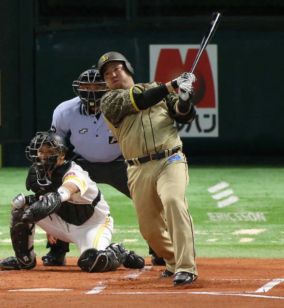 西武・山川 ソフトバンク・大関と「初顔合わせ」でフェンス直撃V打