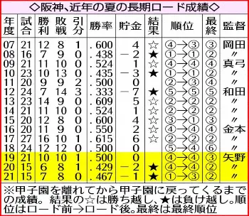 阪神、恒例の「長期ロード」へ 2年連続負け越し中…矢野政権初の勝ち越しキーマンはロドリゲス