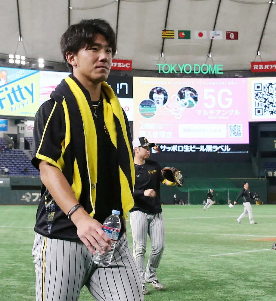 <巨・神(17)>試合前練習を終え、グラウンドを後にする伊藤将(撮影・坂田 高浩)