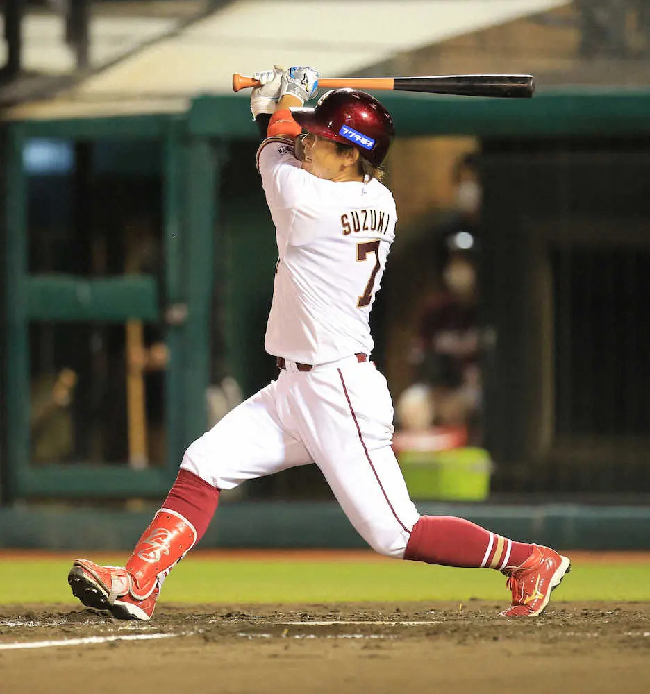 5発&2戦連続2桁安打の猛攻で2位をキープ。常に大声と全力プレーで引っ張る鈴木大が言う。「僕はまだ優勝したことないので偉そうなこと言えませんが、良くも悪くもまた明日。特に今年はコロナで急に選手がいなくなるけど、ありきたりですけど一致団結して頑張りたい」。石井監督不在のチームを支えたベテランによる、有言実行の一打だった。(伊藤 幸男)