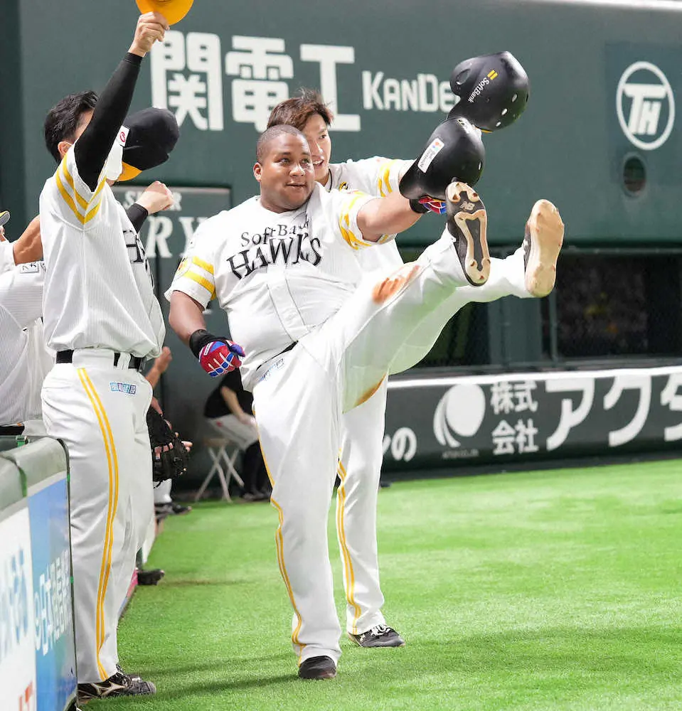 相手先発の滝中には今季2戦2敗。通算でも8試合で5敗を喫してきた。その鬱憤(うっぷん)を晴らすかのように2―1の5回無死一塁、デスパイネが右中間へ6号2ラン。ベンチ前では一塁走者だった柳田と「デスパポーズ」を決めた。初回に適時二塁打を放ち、3回は左前打。サイクル安打に王手を掛け、「ギータ(柳田)がチャンスメークしてくれたので何とか生かそうと思った。最高の形で追加点を取ることができてうれしいよ。あとは3ベースヒットだね」と笑顔でコメントした。