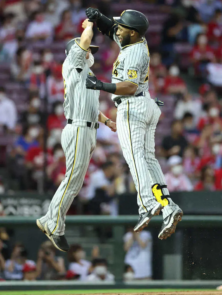 阪神のメル・ロハス・ジュニア外野手(32)が5日の広島戦で22日ぶりの5号2ランを放ち、連敗阻止と今季最多の貯金3への復帰に貢献した。新型コロナ陽性で離脱した大山悠輔内野手(27)らに代わり「特例2022」の適用で降格翌日に出戻り昇格。1―0の4回2死一塁から右中間へ打ち込み、予定外だった先発起用に応えた。