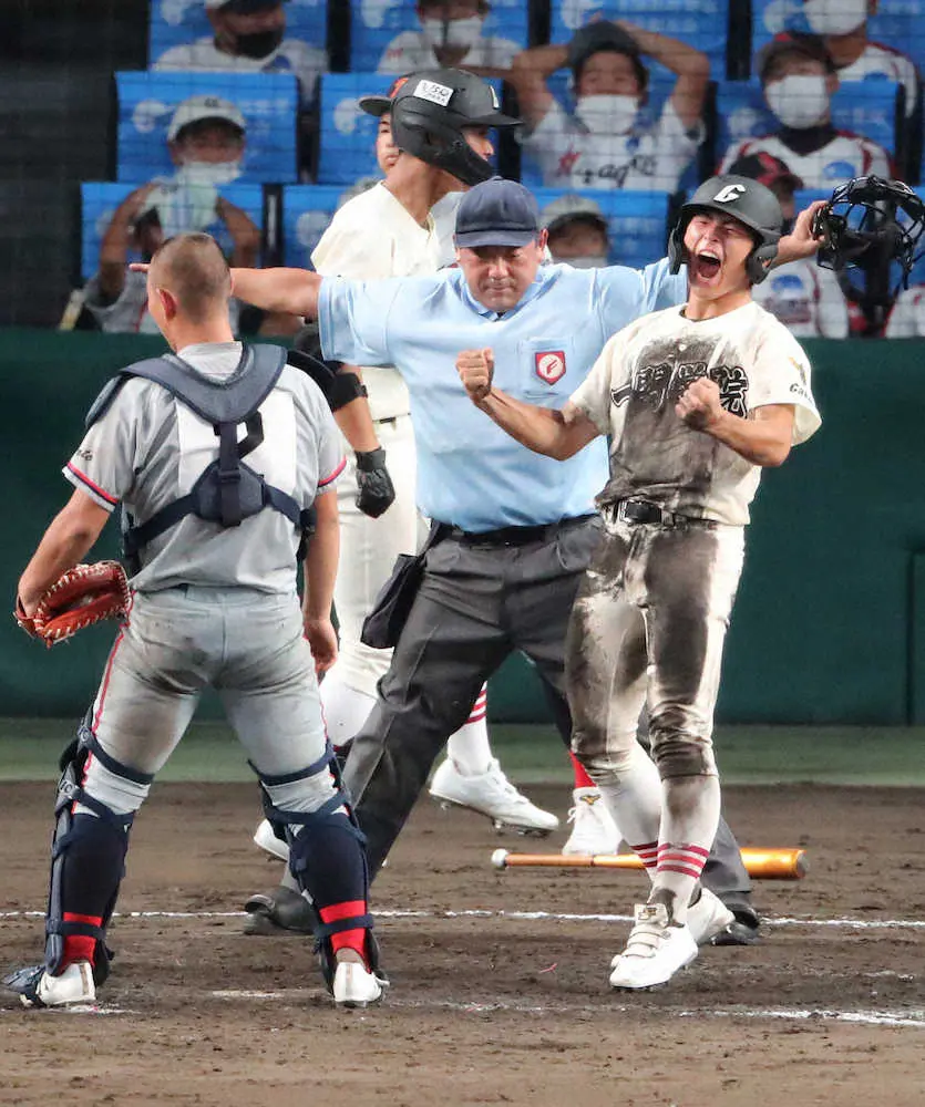 優勝候補の一角との激闘を制し、20年ぶりの初戦突破に「苦しい試合だった分、20年ぶりに校歌を聴けて嬉しかったです」と一息ついた