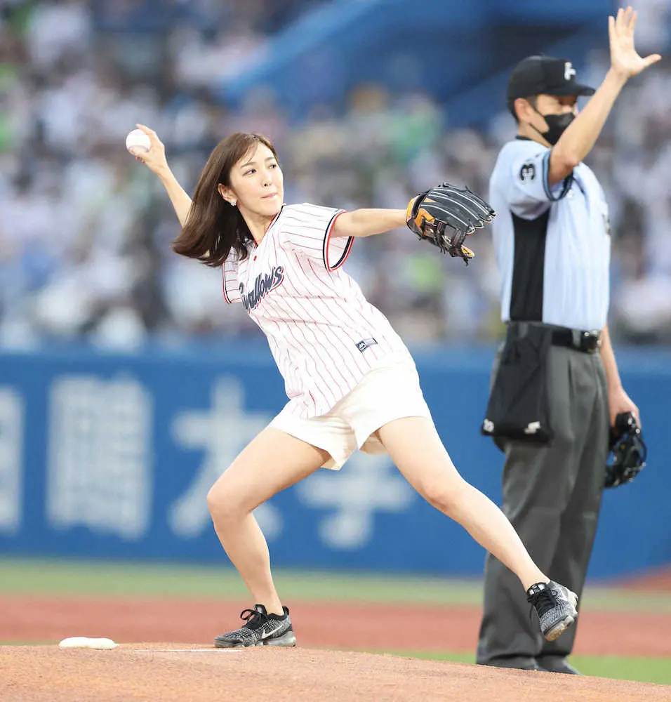 「陽子(ようこ)」にちなんで「45」の背番号のユニホームで登場。ノーバウンド投球を披露し「記憶ないくらい緊張した。1カ月前から練習した甲斐があった。ノーバンだったので100点です」と笑みを浮かべた。